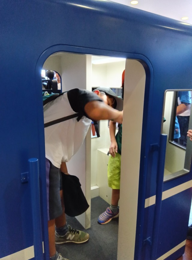 SLの転車台での方向転換や、連結を見学。その後、展示室を見学、体験したり、SLの走る様子に歓声を上げたり、楽しみました。