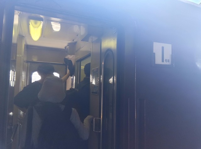 いよいよSLの旅が始まります。3組の皆さんは2号車、1、2組、ひまらや、こもれびの皆さんは1号車です。