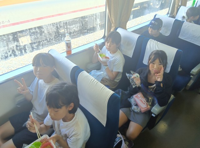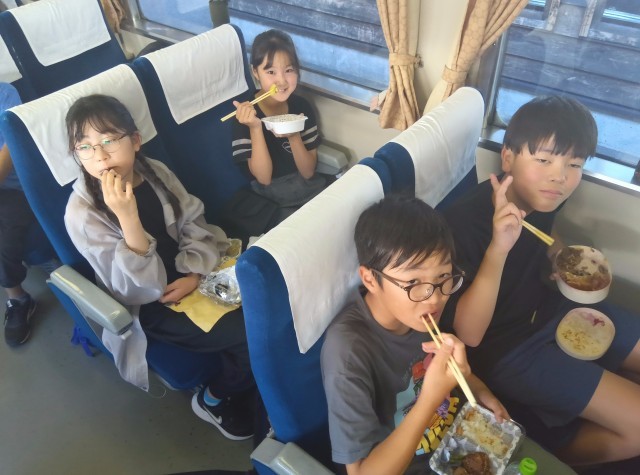 乗り込んだら、お弁当タイム。車内に美味しい匂いが広がりました。みんな嬉しそうに食べていて、見ているこちらも嬉しくなりました。ご準備ありがとうごさまいました。