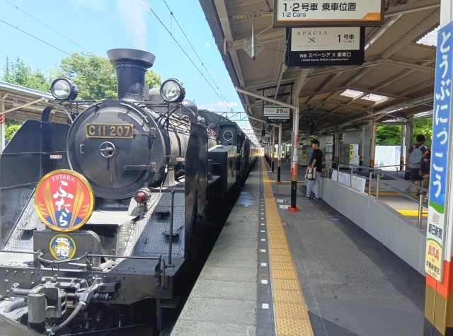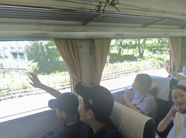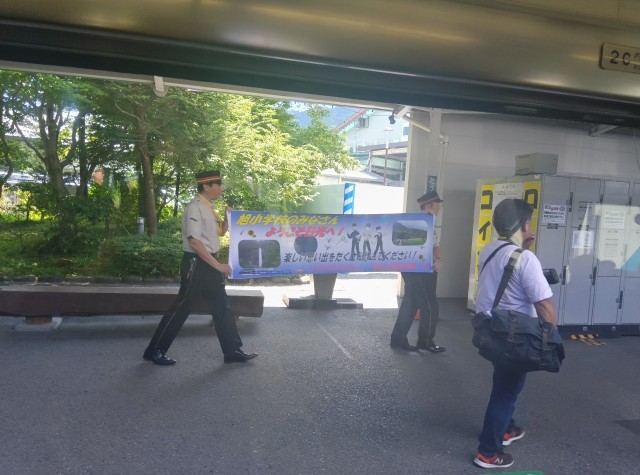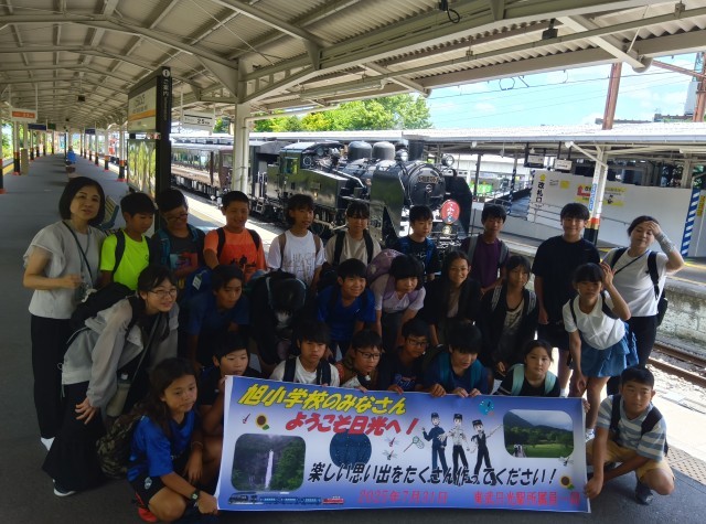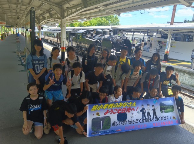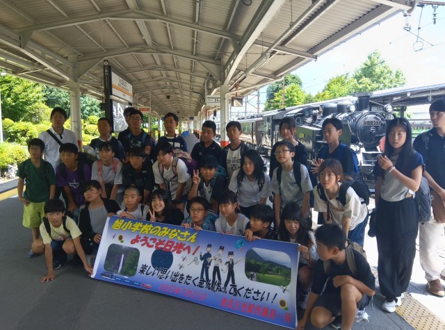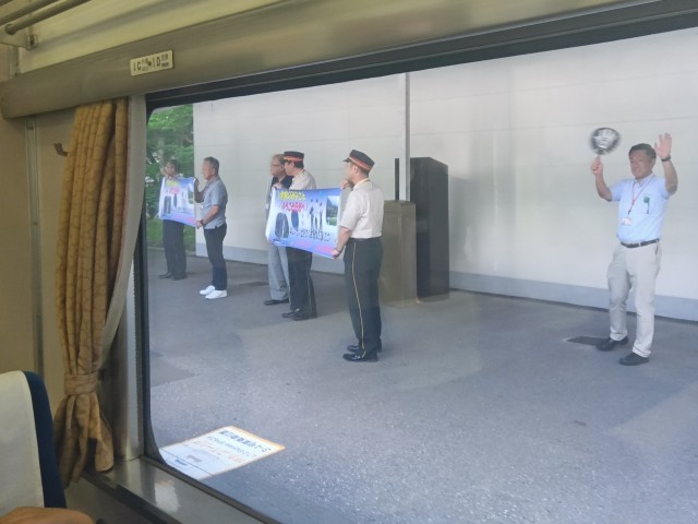 車窓からは、たくさんの方から手を振っていただきました。ご自宅の窓から、ベランダから、お庭から、公園から、お散歩中の方も、ドライブ中の方も、それはそれは驚くほどです。温かなおもてなしを味わい、東武日光駅に到着。すると、今度はホームに、横断幕をもった方々からお出迎えを受けました。