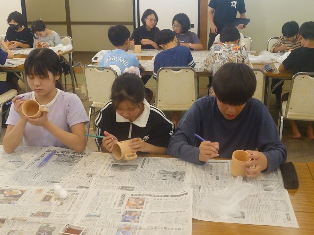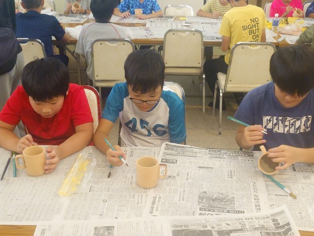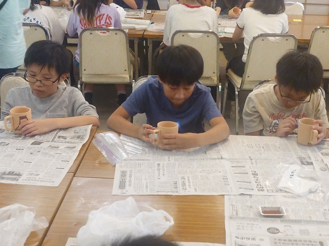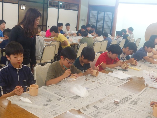 今から一切喋らず、自分と、そして自分の作品と向き合う時間にしましょう、そう講師の先生からお話をいだき、ぐっと集中力を高めた子どもたち。思い思いに筆を動かしました。