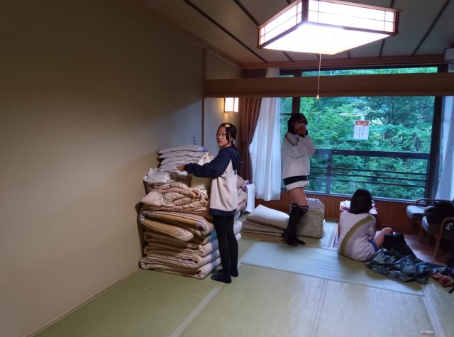 起床後は、身支度、布団片付け、荷物整理と、協力しながらすすめまています。早いお部屋はくつろぐ時間もできていました。