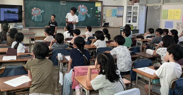4年生 国語 公開日 2025/09/02 更新日 2025/09/02 今日のできごと 1分間スピーチの学習をしています。夏休みの思い出を友達に向けてお話します。参考例を担任が示し、子どもたちがバトンを繋いで行きました。映像を交えてお話する子もいました。子どもたちは興味津々で、スピーチの後には、たくさん質問していました。