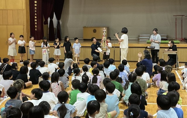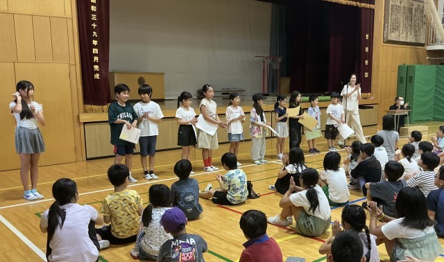 全校朝会 公開日 2025/09/08 更新日 2025/09/08 今日のできごと 校長は、「つらい思いをなくすのは、みんなのやさしさで」をテーマに、子どもたちが安心して学校生活を過ごすために、いじめについてお話しました。子どもたちは真剣に聞いていました。次に、空手、ピアノ、歌、料理・・・様々な分野で活躍した児童の表彰を行いました。看護当番の教員は、今秋の目標「ろう下は、右側を歩こう」についてお話しました。 +1