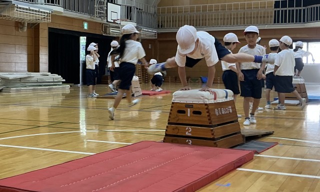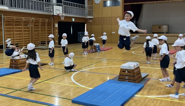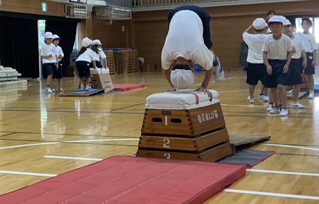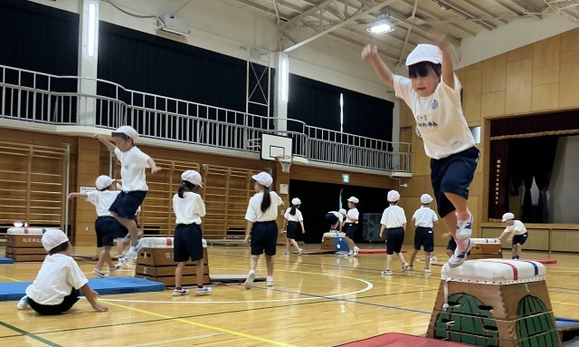 1年生 体育 公開日 2025/09/08 更新日 2025/09/08 今日のできごと 来週の研究授業に向けて、「めざせ!あさひっこスーパーにんじゃ!」跳び箱を使った運動遊びの学習が始まりました。子どもたちは、ニンジャののようにかっこよくをめざして、取り組んでいました。 +1