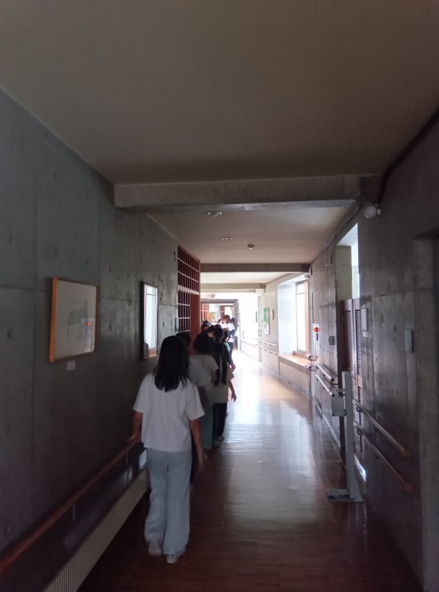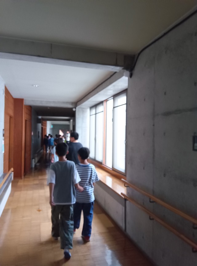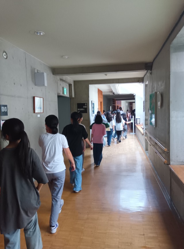 荷物を整えたあと、避難訓練で避難経路を確認しました。