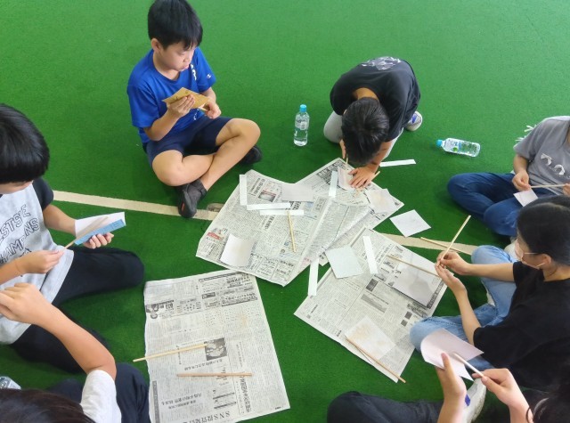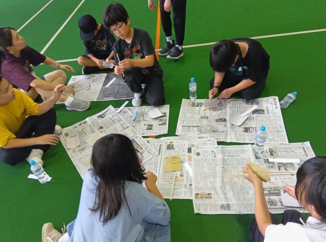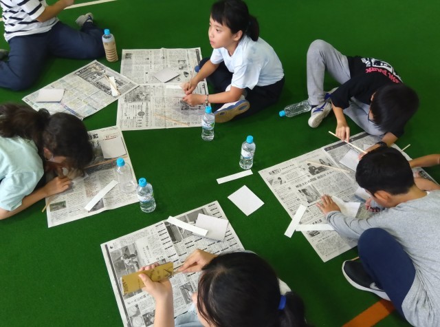 続いては箸作りです。間伐材の活用で、木の棒2本を削って形を整え、磨き上げました。サラダ油を塗るといいそうてわす。