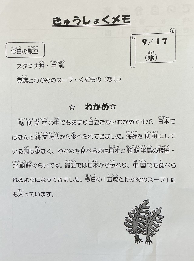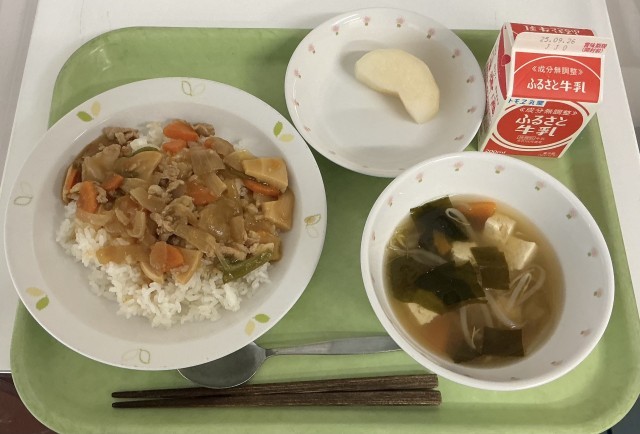 【今日の献立】スタミナ丼・牛乳・豆腐とわかめのスープ・くだもの(なし)