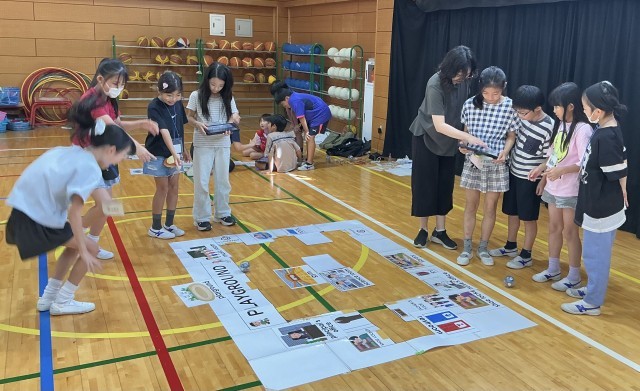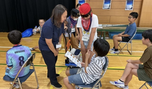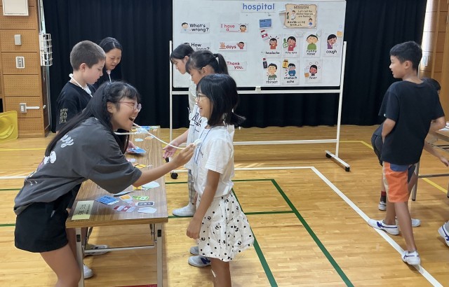 4年生 英語体験出張授業 公開日 2025/09/17 更新日 2025/09/17 今日のできごと 区内に勤務するALTの方にご来校いただき、英語体験出張授業を実施しました。子どもたちは3つのミッション「飛行機の中で注文する」「病院で具合の悪いところを伝える」「学校内の道案内をする」に楽しそうに取り組んでいました。