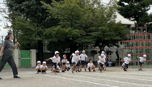 運動会に向けて、50メートル走に取り組んでいます。スタートでピッタっと止まることや全力で走り切ることを学んでいました。