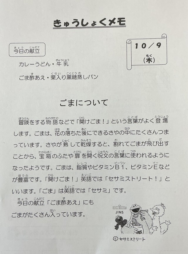 10月9日(木)の給食