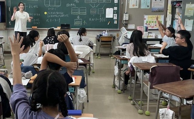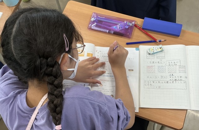 5年生 算数 公開日 2025/10/13 更新日 2025/10/13 今日のできごと 問題「4Lを3人で分けると1人分は何Lになるでしょう」について、図で表して考えました。式と導き出した答えを見て気づいたことを発表しました。