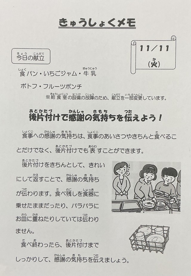 【今日の献立】食パン・いちごジャム・牛乳・ポトフ・フルーツポンチ