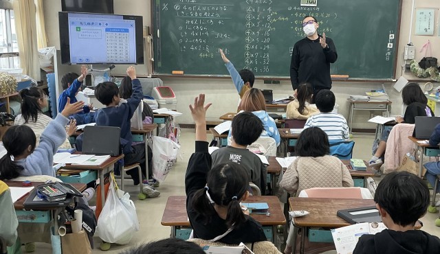 「かけ算」の学習を進めています。4の段がどのような式になるか考えました。