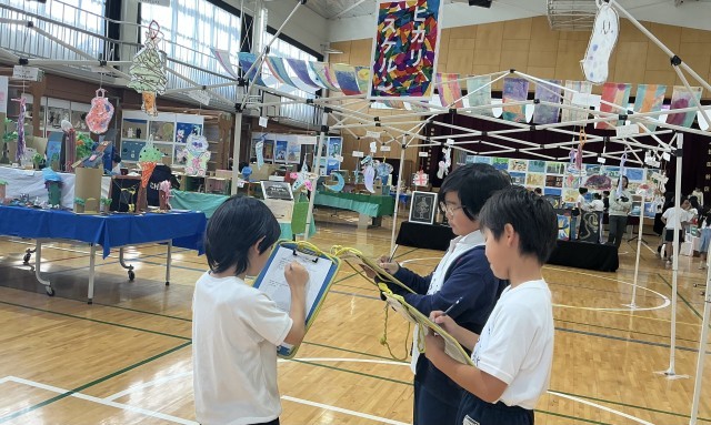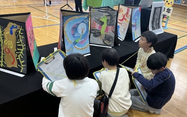 展覧会 児童鑑賞日4 公開日 2025/11/28 更新日 2025/11/28 今日のできごと 学年ごとに1時間ずつ鑑賞しました。子どもたちは、あさひ美術館に入るなり、感嘆の声を漏らしていました。気に入った作品をじっくり見て、感想をカードに書きました。 +2