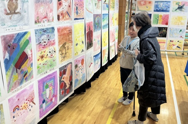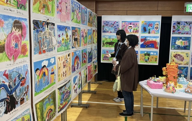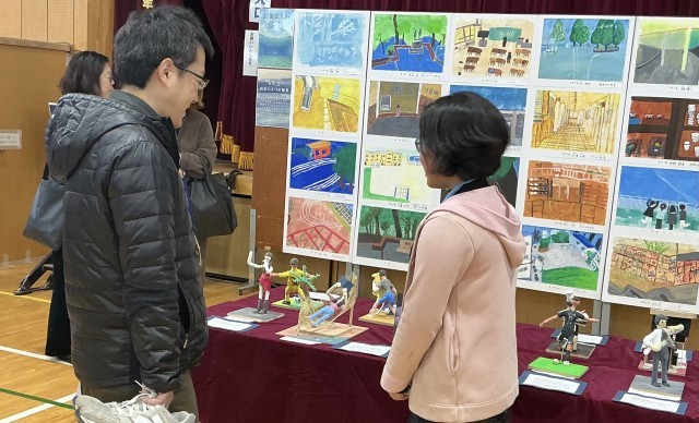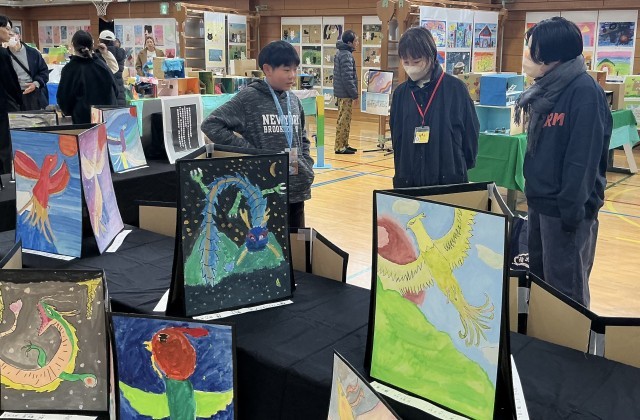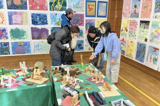 保護者鑑賞日には、6年生が作品についてのガイドを行いました。緊張しながらもしっかりと説明を頑張っていました。