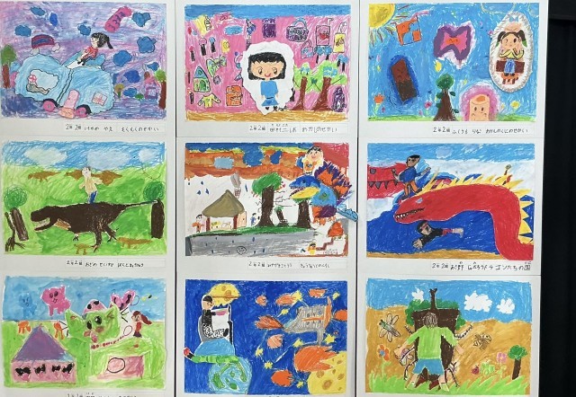 【展覧会8】2年生 こもれび学級1組 公開日 2025/11/30 更新日 2025/11/30 今日のできごと 『のってみないな いきたいな』現実世界では乗れない、でも乗ってみたい!そんな、ユニークな乗り物に乗っているのは自分自身。めいっぱい膨らませた想像の世界に行ってきます!