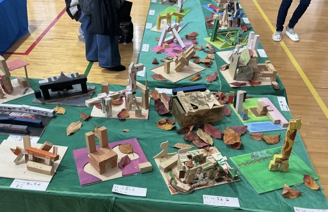 【展覧会19】 4年生『木から生まれた!』 公開日 2025/12/01 更新日 2025/12/01 今日のできごと 初めてのノコギリ、かなづちに挑戦した4年生。木材の使い方を考えたり、組み立て方を工夫したりして作りました。時間を重ねるごとに工具の扱いも上達していきました。木が素敵な作品に変身です。 +3