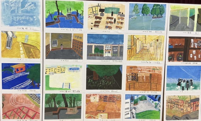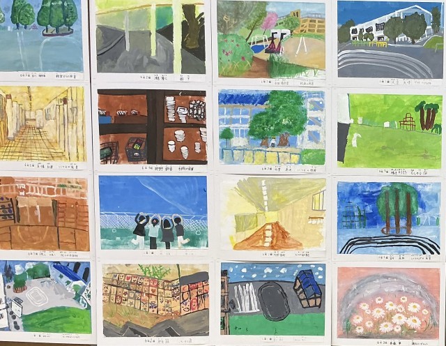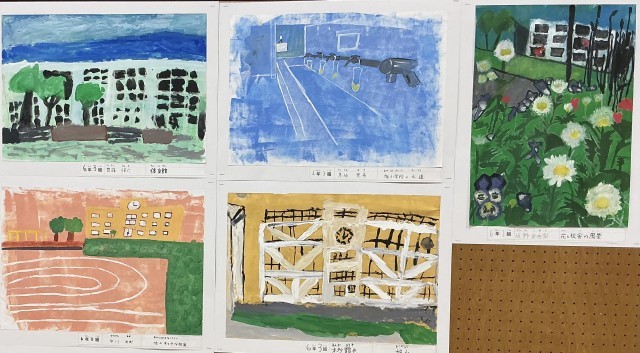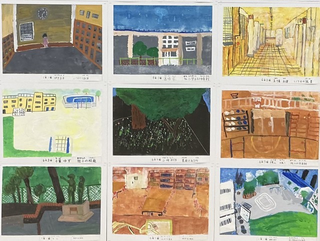 【展覧会28】6年生『お気に入りの風景」 公開日 2025/12/01 更新日 2025/12/01 今日のできごと 学校の中で自分が好きな場所を見つけ、選んだ場所に対する思いを込めながら構図や色づかいなどを工夫して表しました。実際の風景と作者の思いが合わさり、素敵な風景をつくり出しています。 +1
