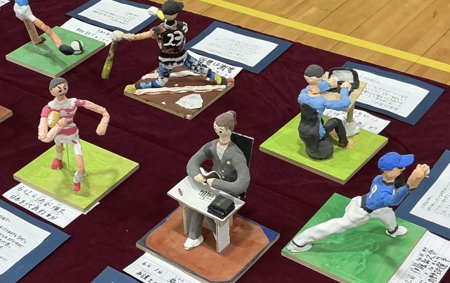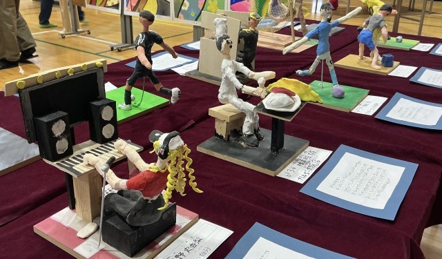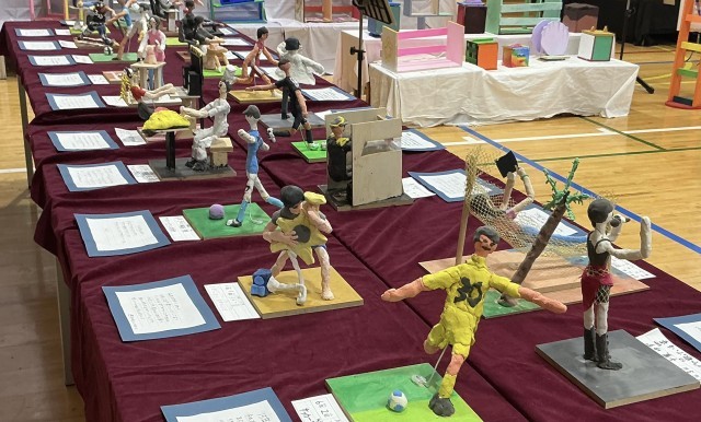 15年後の自分は何をしているのでしょうが。そんな未来の自分を想像して表しました。イメージに合わせて体の動きや服装、持ち物などを意識してつくりました。未来への希望あふれる姿が頼もしいです。