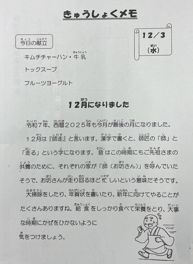 12月3日(水)の給食