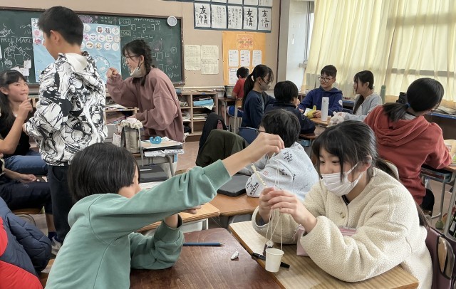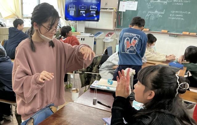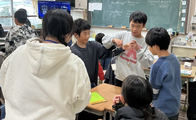「てこのはたらき」の学習を進めています。今までに学習した「てこのうでがつり合う時の決まりを活用して、さおばかりを作りました。