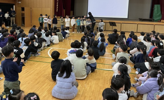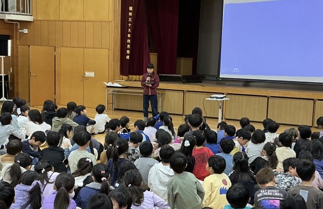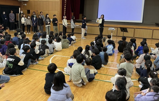 学校長は、11月のふれあい月間のこと、2学期これからの3週間の過ごし方、困ったことは大人に相談することなど、安心して冬休みが迎えられるようにお話しました。次に、「税に関する絵はがきコンクール」「消防写生会」「読書感想文」「空手」で優秀な成績を収めた児童の表彰を行いました。また、世田谷区海外派遣事業でオーストラリアを訪問した児童が、経験してきたことを報告しました。最後に、代表委員は、学校生活をより良くしていくことをねらいに、クイズを作ったことを伝えました。