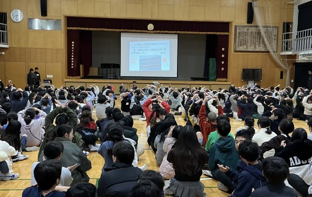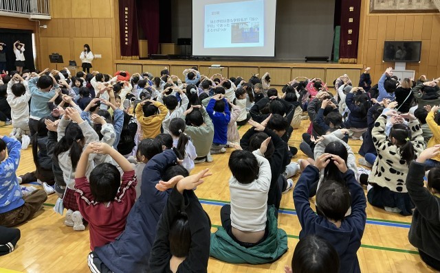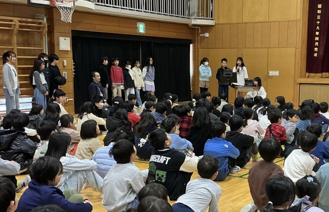 全校集会 公開日 2025/12/17 更新日 2025/12/17 今日のできごと 開校145周年を記念して、図書委員会の児童が旭小学校の歴史について、○✖️クイズを出題しました。正解した子どもたちは大喜びでした。