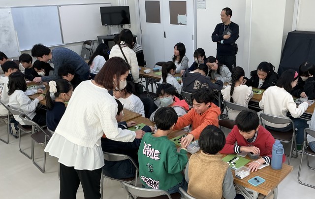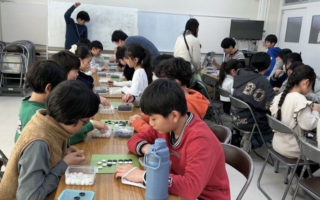 クラスごとに囲碁教室を実施しました。講師の先生からたくさんアドバイスいただき、夢中になって取り組んでいました。