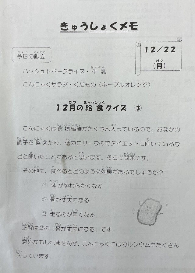 【今日の献立】ハッシュドポークライス・牛乳・こんにゃくサラダ・くだもの(ネーブルオレンジ)