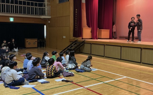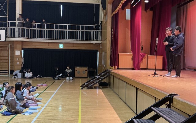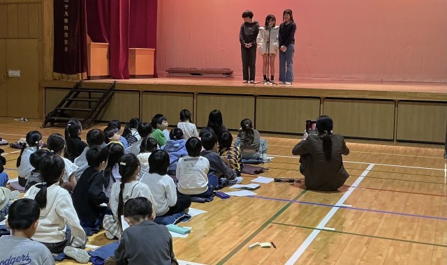 6年生 学級活動 公開日 2025/12/23 更新日 2025/12/23 今日のできごと 1年生との交流お楽しみ会で、「Mー1グランプリ」を行いました。6年生は今日のためにたくさん練習したことでしょう。1年生は面白い場面があると思い切り笑っていました。審査員としても活躍しました。