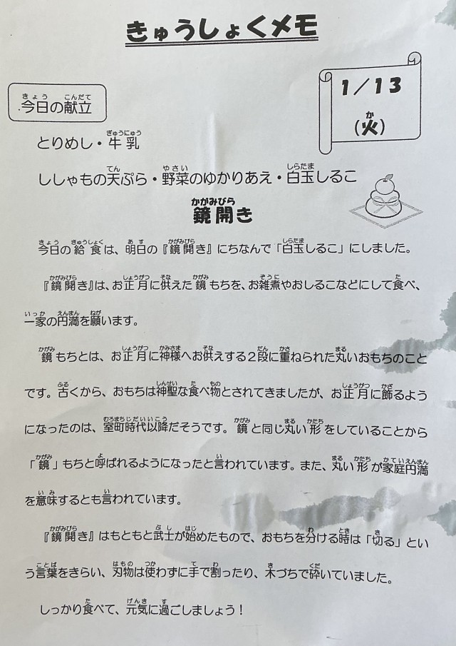 1月13日(火)の給食