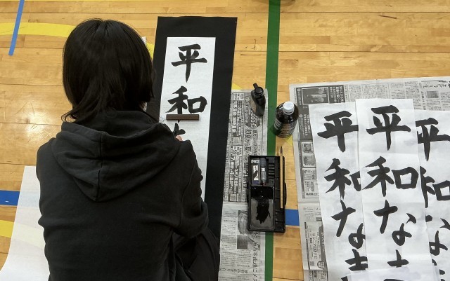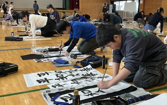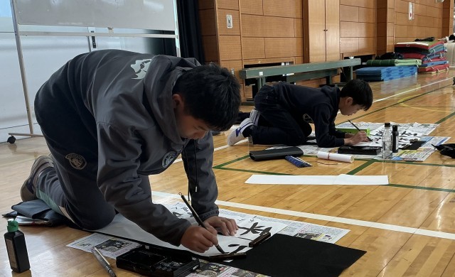 各学年、体育館で席書会を実施しました。写真は、6年生の様子です。練習の成果を発揮し、真剣に取り組んでいる姿勢が印象的でした。
