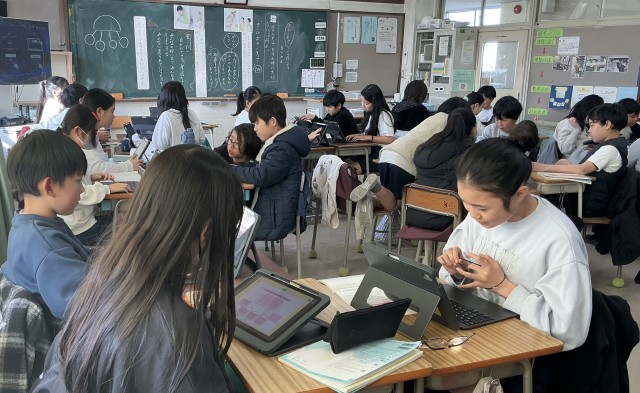教材「クールボランティア」を読み、ボランティアをする時に大切な心は何かについて考えました。グループで意見交流し、考えを深めました。