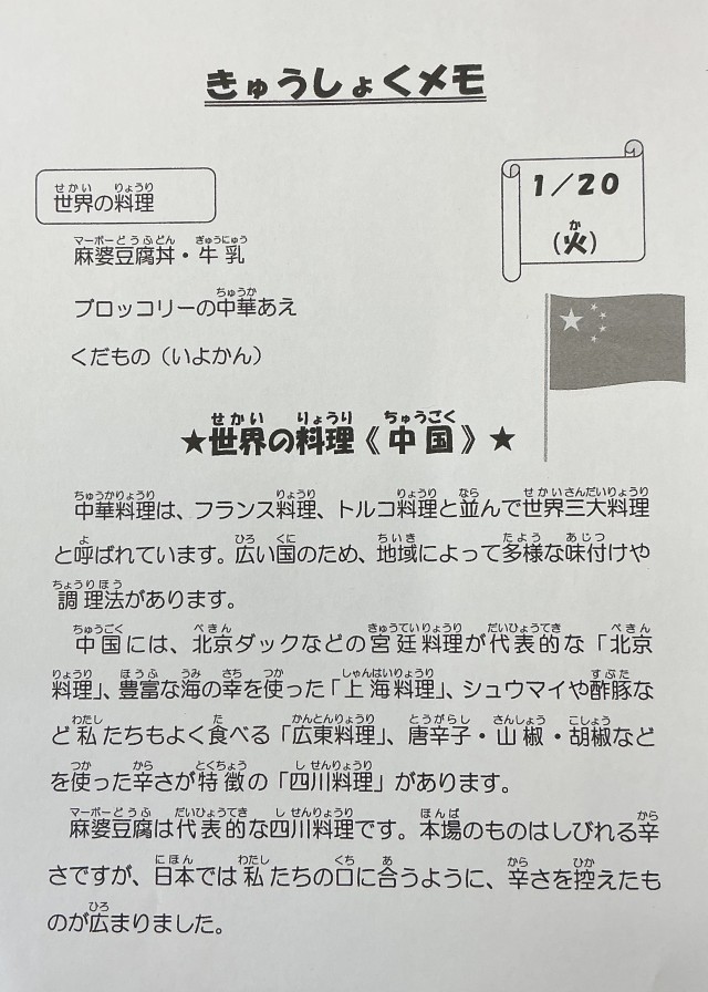 1月20日(火)の給食