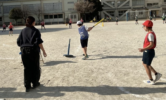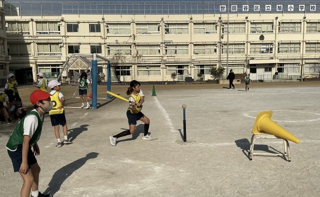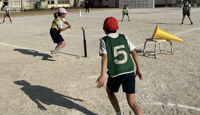 ベースボール型ゲームの学習をしています。ゲームをより楽しくできるように、ルールを工夫したり、場の設定を考えたりしてきました。子どもたちは盛り上がってゲームを進めていました。