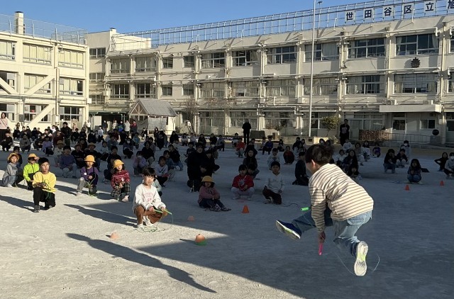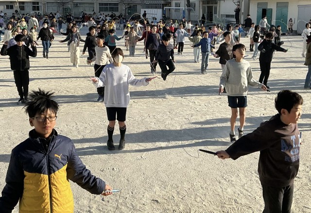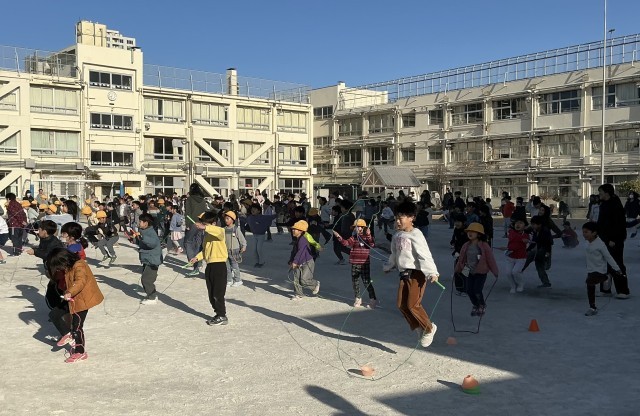 運動朝会 公開日 2026/01/26 更新日 2026/01/26 今日のできごと 今日の運動朝会は、短縄跳びを行いました。自分が得意な技で気持ちよく跳びました。全日本の大会で活躍した児童の技の披露もありました。見たこともない難しい技で見ている子どもたちは驚いていました。