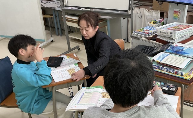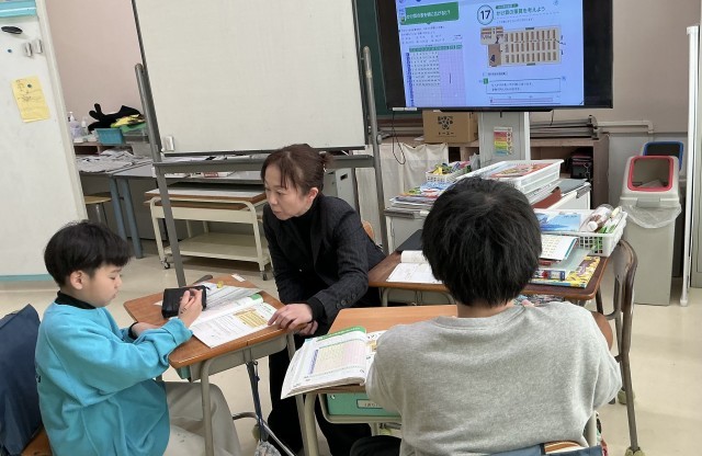 かけ算の筆算の仕方を考える学習をしています。粘り強く熱心に考えていました。
