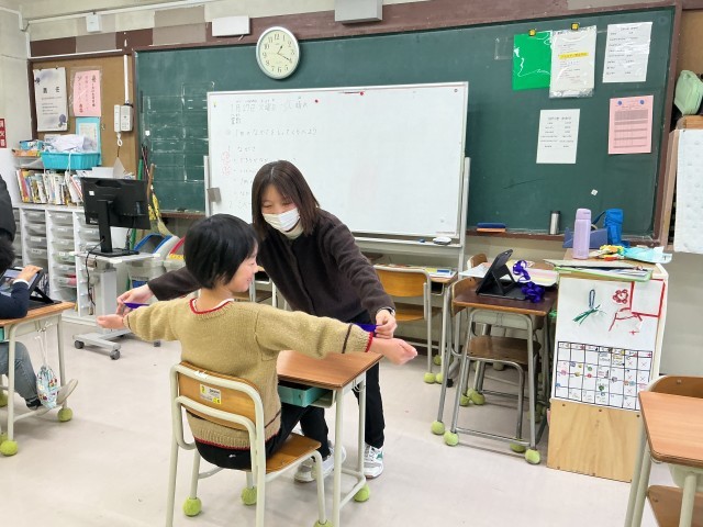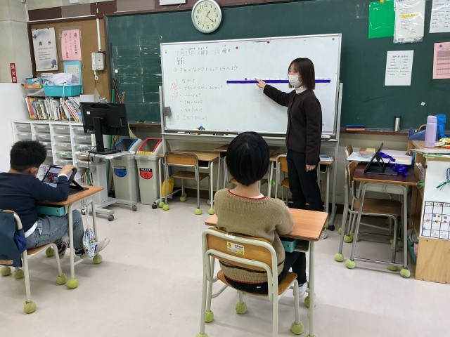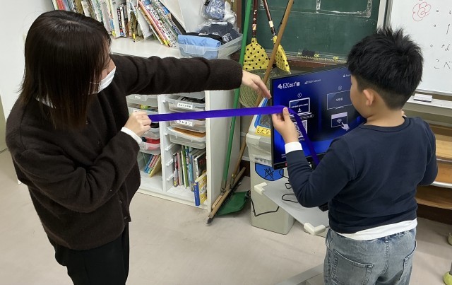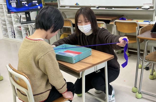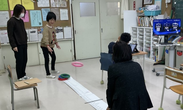 ひまらや学級 算数 公開日 2026/01/31 更新日 2026/01/31 今日のできごと めあては、「1メートルの長さを知って比べよう」です。1メートルのリボンを使って、教室にあるものの長さと比べました。 +2