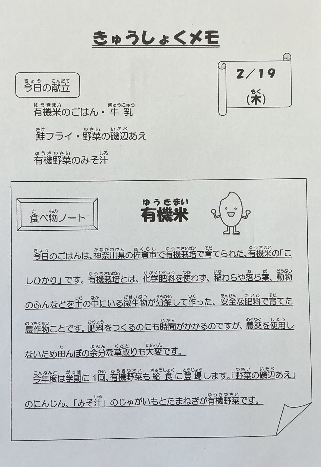 2/19( 木 ) 2月19日(木)の給食
