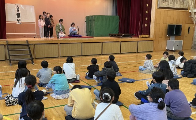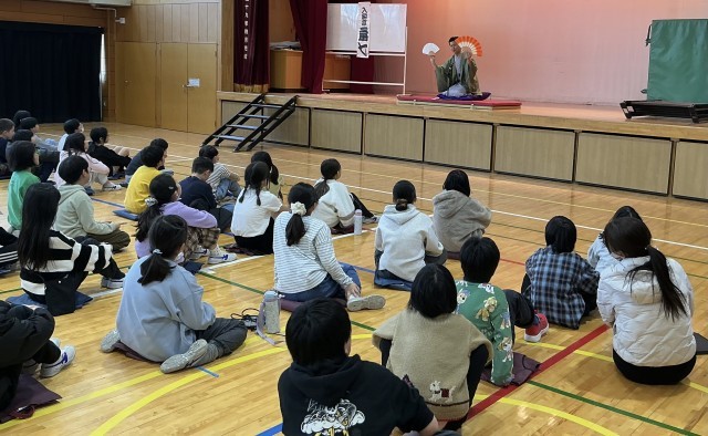 落語教室 公開日 2026/02/19 更新日 2026/02/19 今日のできごと 4年生を対象として落語教室を実施しました。入船亭 扇七 様が落語のおもしろさ、奥深さを披露してくださいました。子どもたちは落語を体験し、嬉しそうにしていました。