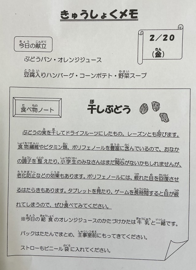 2/20( 金 ) 2月20日(金)の給食