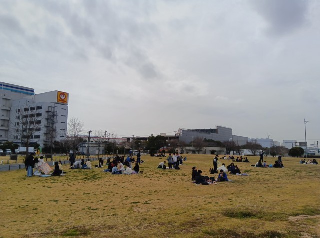 東扇島東公園に移動しました。お弁当の時間です。いつもより登校が早めだったこともあり、お腹をすかせている子がたくさん!美味しくいただきました。
