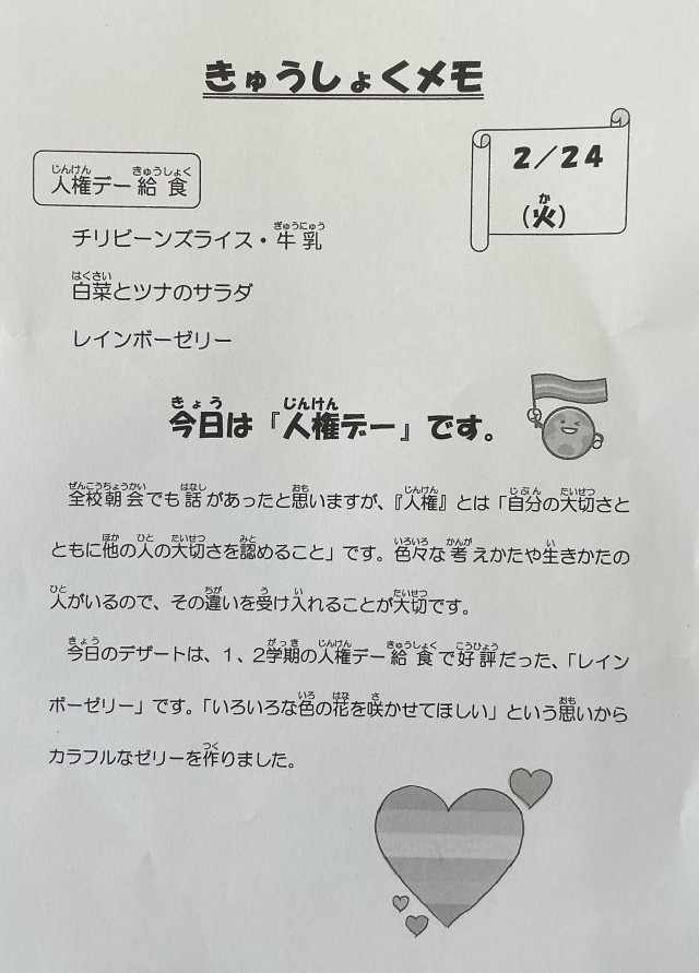 2/24( 火 ) 2月24日(火)の給食