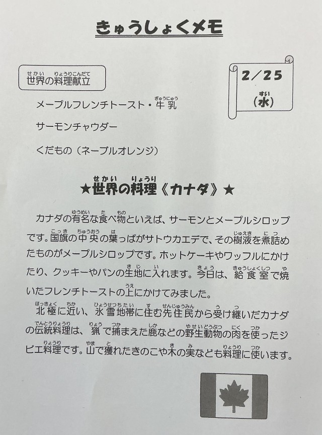 2/25( 水 ) 2月25日(水)の給食
