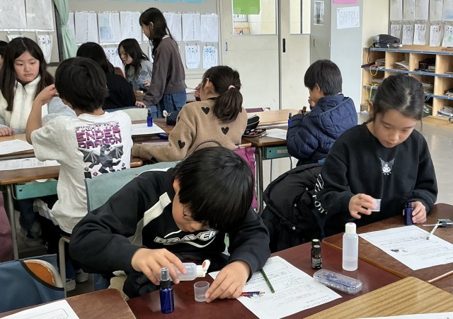 3年生 総合的な学習の時間 公開日 2026/03/01 更新日 2026/03/01 今日のできごと 「植物たちがもつ力」について学習を進めています。今回は「香り」に着目して学んだ後に、アロマスプレーを作って楽しみました。