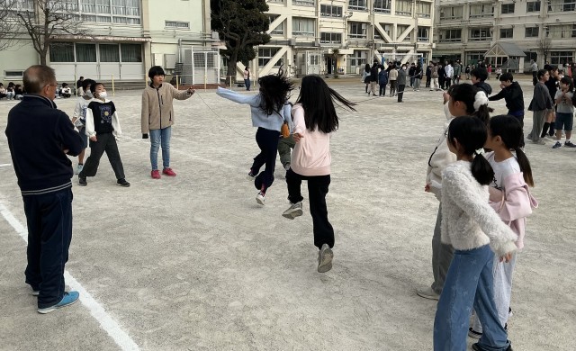 長縄跳びの2回目。多くのクラスが記録を更新し、練習の成果を発揮していました。