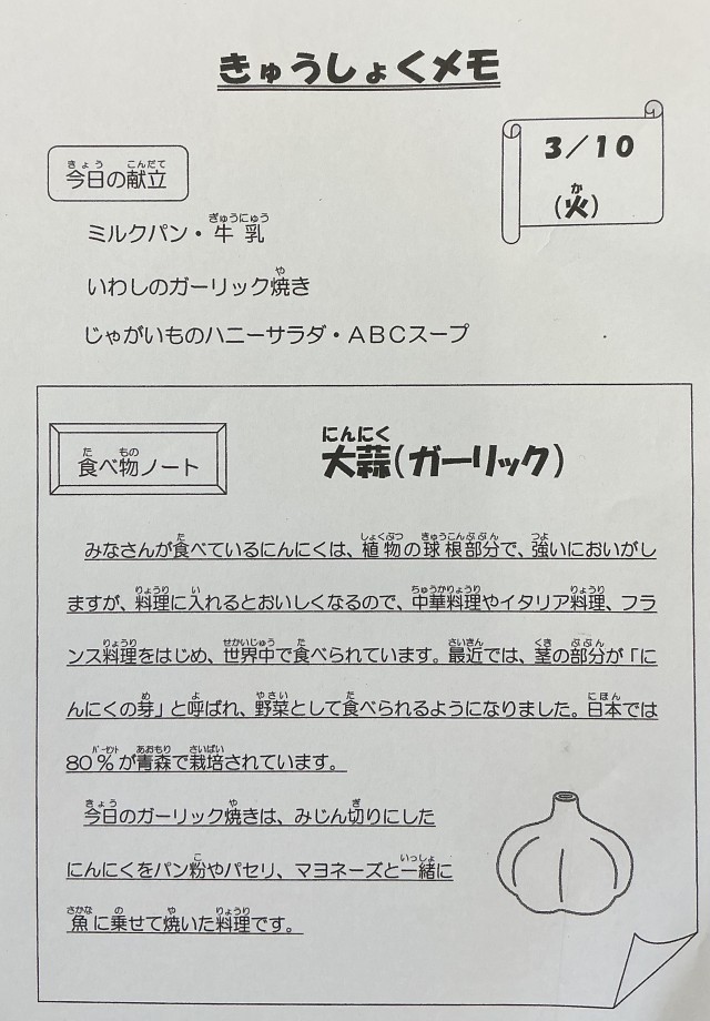 3月10日(火)の給食