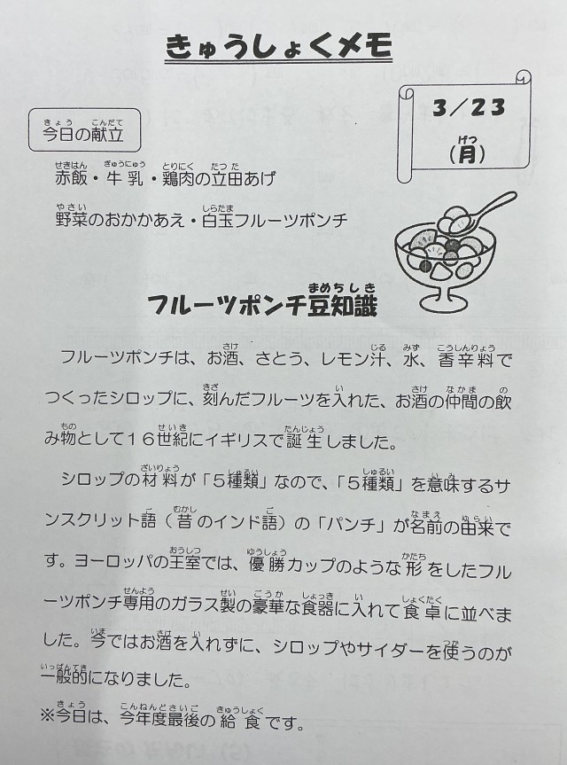3月23日(月)の給食