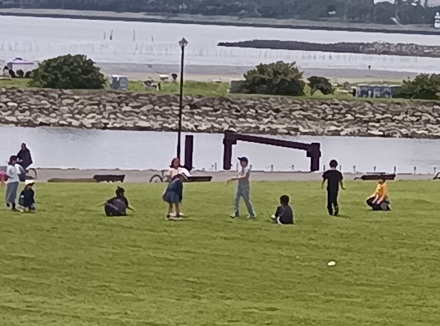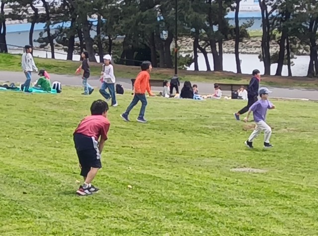 潮風広場でお弁当を食べ終えて、自由遊びをしています。